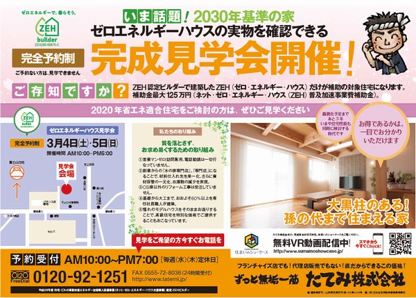 富士吉田市でついに完成!3月4日(土)・5日(日)ゼロエネルギーハウス現場完成見学会開催!
